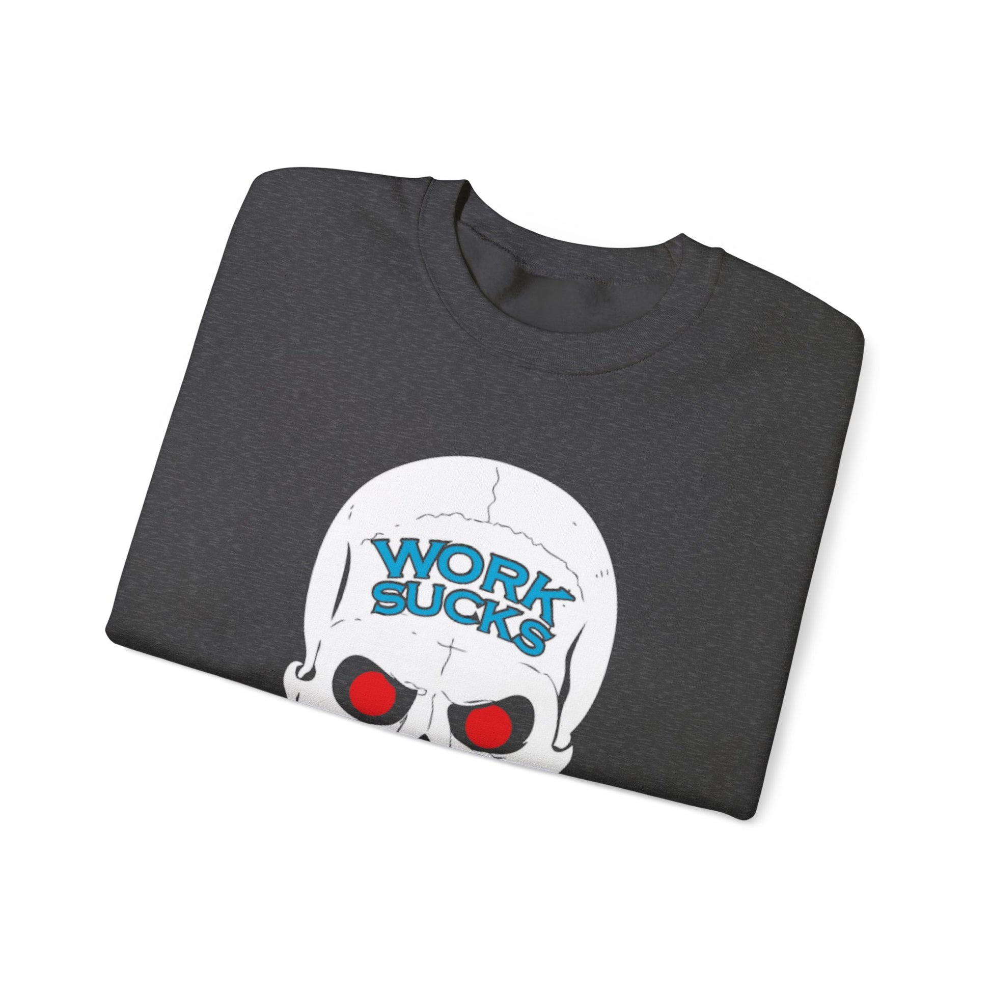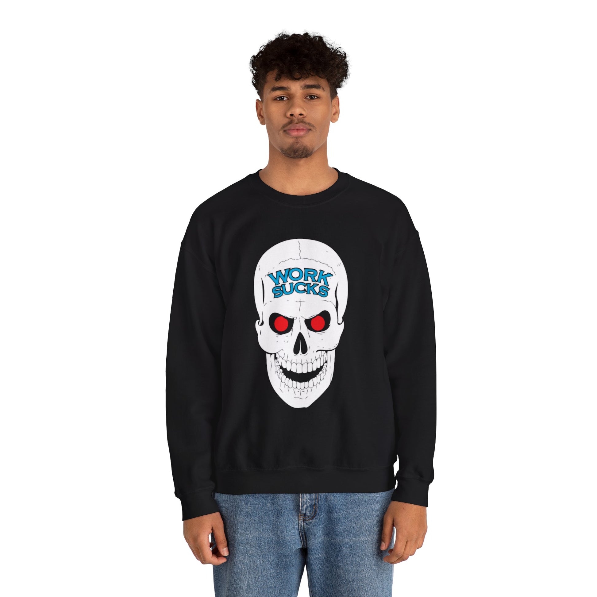 Crewneck Sweatshirt — 'Work Sucks' Skull Graphic